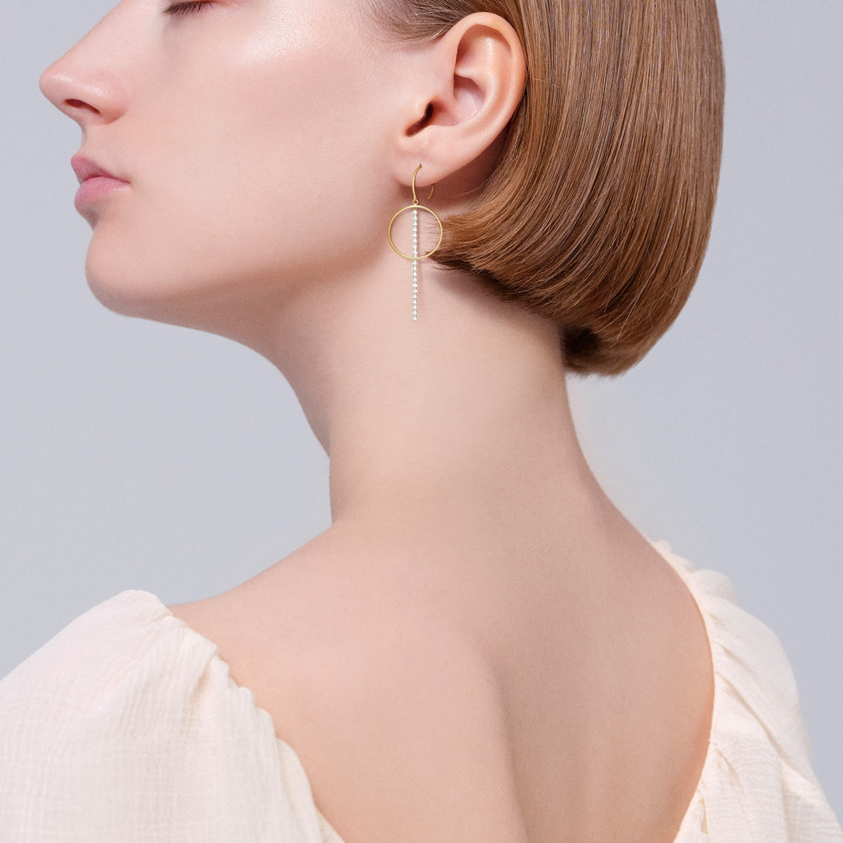 The string of diamonds sways and sparkles delicately to give the earring a refined and modern impression, inviting the wearer and the surroundings into an enchanting world.