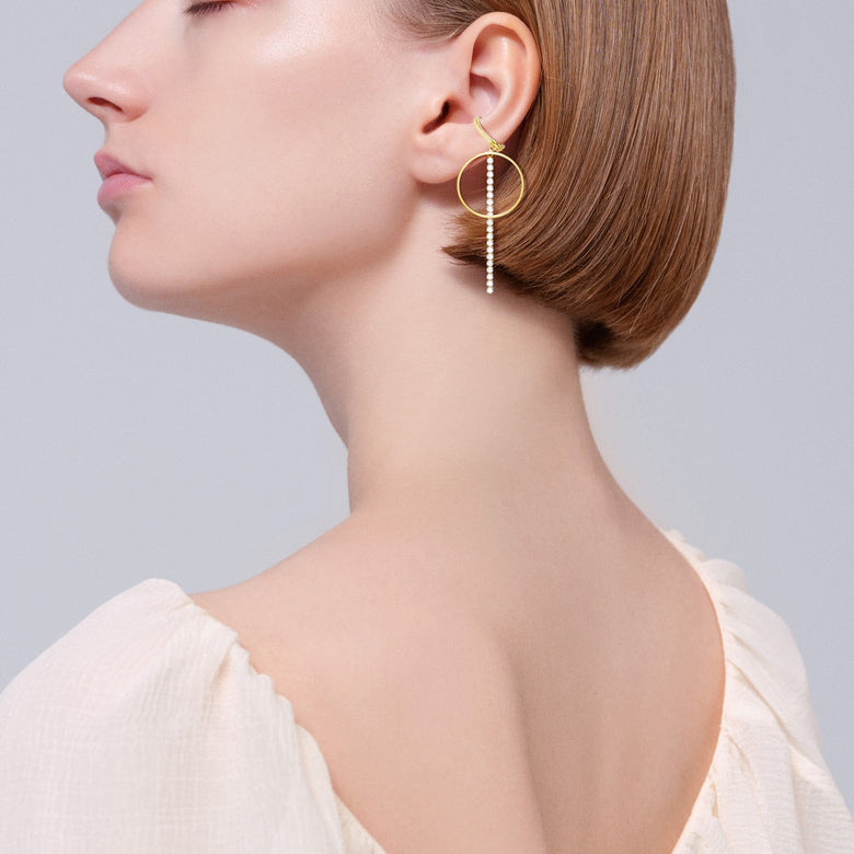 The string of diamonds sways and sparkles delicately to give the earring a refined and modern impression, inviting the wearer and the surroundings into an enchanting world.