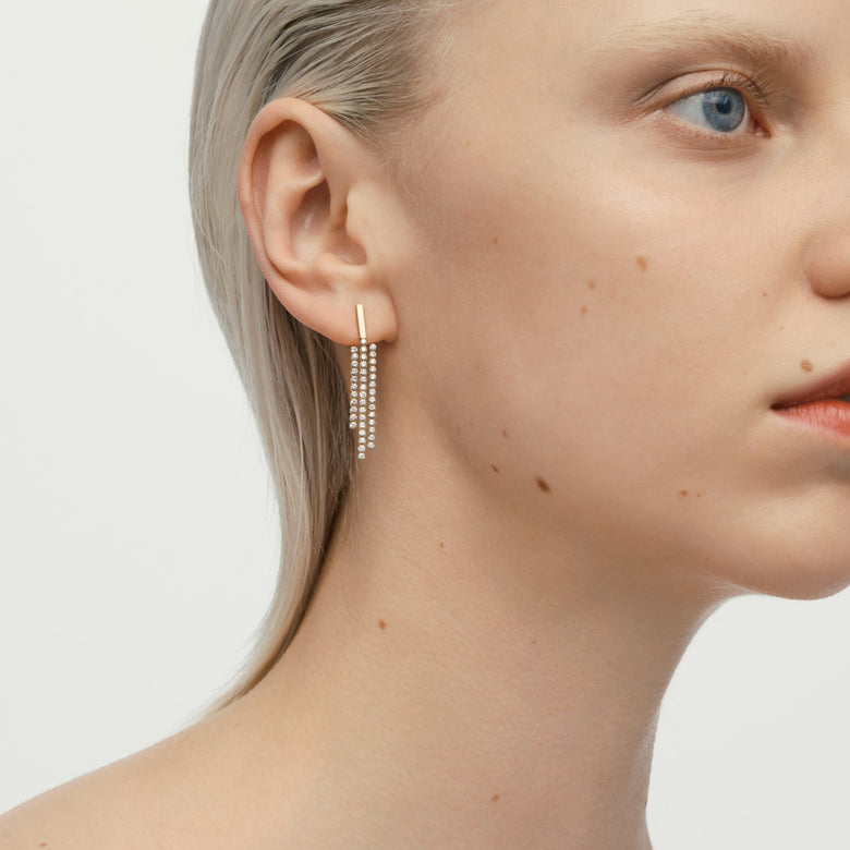 This single earring is inspired by chandeliers radiating sophisticated brilliance and adding glamor to a space with beautiful light and shadow.