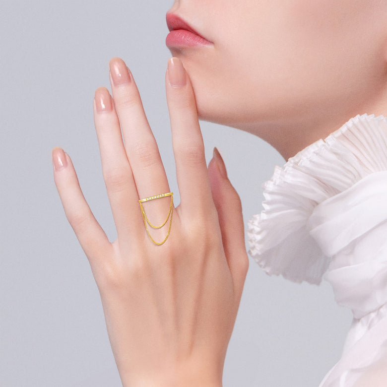 This ring is inspired by chandeliers radiating sophisticated brilliance and adding glamor to space with beautiful light and shadows.