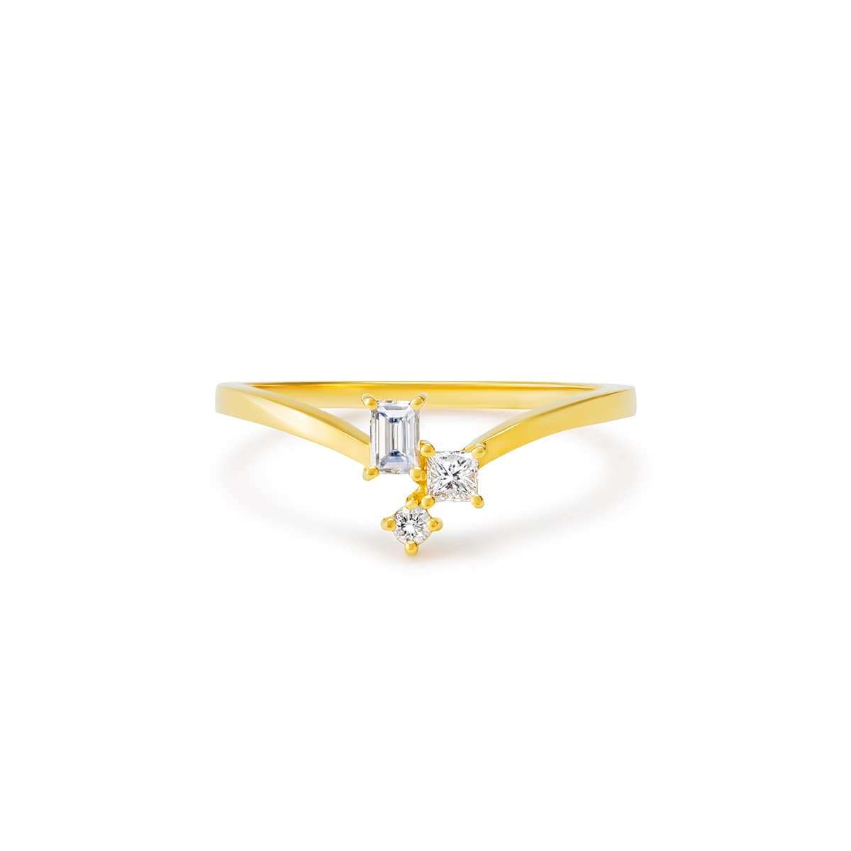 鑽V形線條的鑽石鑲嵌,舞動指尖扣人心弦。Material:18K黃金/鑽石Product Number:n-a-91Collection:mosaicCarat:鑽石總重約:0.13 克拉Size:5號~15號 / 戒飾長約7.0mm×寬約5.1mm / 戒寬約1.3mm